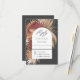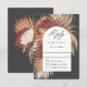 Un beau mélange de palmiers éventails séchés tropicaux encadrant votre texte dans un cadre arqué géométrique populaire ajoute un attrait distinctif à cette carte de réponse de mariage. La palette de couleurs neutres chaudes est un choix polyvalent tout au long de l'année et est particulièrement charmante pour les mariages d'été ou d'automne. Montré ici sur un fond gris charbon, d'autres couleurs sont disponibles. Personnalisez le modèle de texte avec la date de RSVP requise.