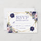 Elégant Boho Aquarelle crème et fleurs bleu foncé et le feuillage d'hiver avec cadre géométrique or