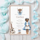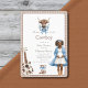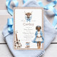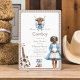 Bienvenue à votre petit buckaroo avec cette adorable invitation de baby shower occidental boho. Ce design présente une illustration très émouvante d'une mère enceinte en bottes cardiganes et cowboy bleues, à côté d'une guitare acoustique rustique et de petites bottes cowboy, le tout face à un arrière - plan confortable. Les touches florifères bleues apportent une touche d'élégance douce, créant une invitation unique et mémorable à votre événement spécial. C'est un choix idéal pour les parents à la recherche d'une façon unique et élégante d'annoncer leur baby shower.