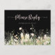 Cette carte de réponse de menu noir boho wildflower est parfaite pour un mariage rustique. Le design présente des fleurs sauvages aquarelles roses, blush, jaunes et blanches disposées en bouquets élégants.