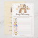 Ce jeu de baby shower Emoji Pictionary est garanti être un grand succès! Il vous suffit de les faire circuler pendant le Baby shower où les invités s'amuseront à comprendre quelle phrase liée à la grossesse chaque ensemble d'émoticônes représente. La personne qui a le plus de points gagne ! Le design comprend des animaux de bois aquarellés et un arc-en-ciel avec des confettis en feuille d'or.