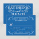 Mangez, buvez et soyez mariés — invitation de mariage campagnard rustique de style Vintage personnalisée Cartes de réponse RSVP — rouleaux Tourbillonnant, bouclés et typographie à boiseries de mode ancienne en blanc éclatant sur l'arrière - plan bleu ultra-marin de l'océan Pacifique. Ajoutez les noms de mariée et de mariée et de mariage et les dates de réponse dans ce modèle facile à utiliser. Un style élégant mais amusant et fantaisiste, rétro écrit à la main peut être facilement modifié pour vos thèmes mariages formels ou semi-formels. Décontracté style champêtre moderne est parfait pour les mariages rustiques branchés avec une touche amusante de charme sophistiqué pour les couples traditionnels. Veuillez nous contacter pour obtenir de l'aide sur la personnalisation si vous avez besoin d'espace supplémentaire pour les détails de votre mariage. Autres tailles et styles disponibles, ainsi que les invitations assorties, timbres-poste, accessoires de coordination et les faveurs de douche.