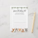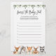 Baby shower à thème pour animaux de bois devinez la carte de jeu pour aliments pour bébés avec une aquarelle safari animaux illustration et aquarelle vert eucalyptus garland et élégante police manuscrite.