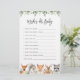 Les souhaits de baby shower à thème pour les animaux de bois pour la carte de jeu pour bébé comprennent une aquarelle des animaux de bois illustration et aquarelle de la verdure eucalyptus garland et élégante police manuscrite.