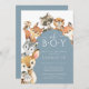 Cette invitation baby shower présente une variété d'animaux boisés encadrant une arche moderne en bleu, ce qui la rend parfaite pour un baby shower garçon. Le cerf, le lapin, le renard, le castor, le loup, la chouette et le raton laveur ajoutent une touche de fantaisie et de plaisir, tandis que l'élégante arche garde l'invitation à l'air poli et sophistiqué.
