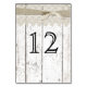Rustique cottage chic carte de numéro de table de mariage fait dans un look de bois lavé blanc en détresse. Graphiques de belle dentelle crochetée en ivoire, en haut, et un double ruban d'ivoire attaché dans un noeud court sur la largeur de l'en-tête de dentelle. Le grand numéro noir est prêt à être personnalisé pour chaque table à la réception. Produits correspondants disponibles.