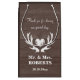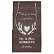 Vintage bois brun cerf bois cerf bois fête de mariage préférez les sacs cadeaux. Le design de la faune et de la chasse chic à la campagne. Jolie campagne chic planches en bois design avec coeur patiné et initiales de nom. Monogramme avec symbole d'amour défraîchi et typographie élégante. Personnalisé avec des lettres stylisées pour mariée et mariée plus la date du mariage. Parfait cadeau jeton / sacs souvenirs pour les mariages rustiques comme les mariages de grange de jardin extérieur. Jolies couleurs noir et blanc. Le couple de jeunes mariés, M. et Mme. Merci de partager notre journée spéciale !