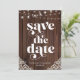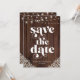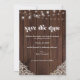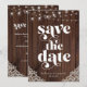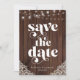 Rustic Wood String Lights Lace Wedding Enregistrer les Cartes de Date avec un arrière - plan en bois rustique avec des cordes scintillantes de lumières et dentelle de style vintage dans les coins inférieurs. Le mot mariage est lancé dans la typographie rustique et rétro de l'ouest, ce qui en fait le design parfait pour votre boho ou mariage campagnard. Veuillez nous contacter à cedarandstring@gmail.com si vous avez besoin d'aide pour la conception ou les produits correspondants.