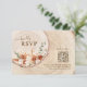 Faites en sorte qu'il soit facile pour vos invités de se rendre à RSVP avec cette carte de réponse mariage de code QR à grains coupés rustiques, conçue pour ressembler à une tranche de tronc d'arbre avec des bagues en bois naturel. Doté d'une aquarelle fleurie de saumons boho dans des tons chauds de terre cuite, cette carte unique et créative de mariage RSVP est parfaite pour les mariages de grange, de ferme, de campagne, d'extérieur et de forêt. Avec un code QR scannable pour RSVP en ligne et le suivi du nombre d'invités, ce design moderne et intemporel allie charme organique et commodité. Idéal pour les couples à la recherche d'une suite de faire-part de mariage vraiment attrayante et romantique avec une touche d'élégance vintage et boho.