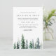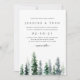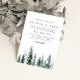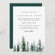 L'élégante invitation à un mariage d'automne ou d'hiver se compose d'une copine de grands pins d'aquarelle dans les tons gris sauge et vert chasseur. Personnalisez avec vos détails de mariage en lettrage doux et noir. Un beau choix pour des mariages élégants d'automne ou d'hiver en montagne, en forêt ou en bois.
