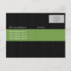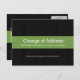 Ces cartes de changement d'adresse modernes et pointues sont dotées d'un arrière - plan en bois foncé. Sur le devant, indenté dans le bois est une bande verte. Le texte en haut dit "Changement d'adresse", et est entièrement personnalisable. Changez ceci pour nous avons déplacé ou nous sommes en train de déplacer et ajouter vos propres messages! Le dos est également doté d'une bande rouge avec de la place pour votre nouvelle adresse, et l'adresse des personnes que vous envoyez les cartes postales aussi.