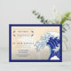 Cette faire-part de mariage est personnalisable avec vos propres noms, et le mariage ci-dessous "de leur mariage" sont 100% personnalisables. L'arrière de la carte et la bordure à l'avant sont en bleu foncé pour correspondre à la vague, qui plane, instants avant de s'écraser, à droite de toute la formulation faire-part de mariage. Tous les mots avant la date et les détails du mariage sont justifiés, donnant à la conception une touche élégante et méticuleuse.