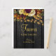 Chute de plantes botaniques florales et de citrouille orange rouillé sur un bois de grange foncé avec des lampes à cordes mariage ou la douche nuptiale signe de faveur.