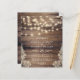Un thème mariage classique avec un arrière - plan rustique en bois, de la dentelle imitation vintage et des lampes à cordes. Les détails de votre cérémonie apparaissent dans la typographie officielle. Dans le cadre de la sélection du budget ici sur Zazzle, ces invitations ne sont pas fournies avec des enveloppes et ne s'intègrent pas parfaitement dans une enveloppe de taille standard. La taille la plus proche est A6 mais il y aurait un écart d'environ un demi-pouce. Si cela ne vous dérange pas, vous pouvez utiliser des enveloppes A6 aussi largement disponibles. Sinon, cette conception peut être transférée dans un format standard 5x7 (avec enveloppes) à l'aide de l'outil de transfert de conception.