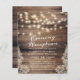 Une invitation à la réception du soir ! Un thème mariage classique avec un arrière - plan rustique en bois, de la dentelle imitation vintage et des lampes à cordes. Les détails de votre événement apparaissent dans la typographie formelle. La collection de coordination est disponible dans notre magasin. N'hésitez pas à m'envoyer un message pour toute question, je serai heureux de vous aider ! :)