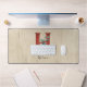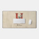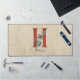 ce tapis de bureau illustré de lettre/initiale est en bois clair arrière - plan avec grange en bois rouge Lettre H accentué par une tige aquarelle de feuilles eucalyptus.