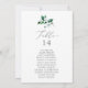 Ces cartes d'assignation des places de table en bois vert sont parfaites pour un été ou un mariage de automne. Le design boho moderne comprend des feuilles d'eau vert émeraude, sauge et olive luxuriants et des botaniques avec des sprigs de fleurs blanches élégantes. La carte s'imprime à l'avant et à l'arrière (double face).