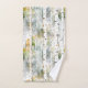 Jeu de serviettes de bain blanc et vert motif.