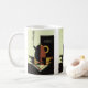 Illustration vintage de boissons avec une image représentant des tasses à café et un pot de café fumant sur une nappe.