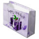 Sachez vos cadeaux de Noël avec ce sac cadeau fantaisiste et festif de boîte de Noël violet. Le design des sacs-cadeaux comprend un cadeau de Noël violet éclatant orné de flocons de neige tombant contre un élégant parchemin et arrière - plan feuille. Autres cadeaux et objets de vacances disponibles avec ce design aussi.