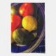 Ajoutez de la couleur à votre monde avec cette serviette de cuisine de ZoeSPEAK, une photo originale de fruit dans un bol bleu cobalt. Quelques citrons, avocats et tomates ajoutent du jaune, du vert et du rouge au mélange, le tout sous une lumière chaude et jaune.