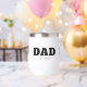 This steel stemless wine tumbler features a bold black serif font that says 'Dad', which you can swap out for a different (short) term or name, followed by the established line, where you can add the year you became a father. All colors and elements can be edited in the Zazzle design tool. ••• For more Father's Day gifts, visit my store Zazzle.com/Yeah_The_Boys ••• For custom orders, message me on Zazzle