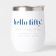 Bold Typography Bright Blue and White Modern 50th Birthday Custom Wine Tumbler