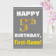 Ce simple design de carte de voeux sur le thème de l'anniversaire présente un voeu d'anniversaire chaleureux comme "HAPPY 5th BIRTHDAY, First-Name!" sur le devant, en texte gras sur un arrière - plan gris (gris) coloré. Le numéro d'anniversaire a un look de couleur imitation or. Le nom sur le devant peut être personnalisé. L'intérieur comporte un message d'anniversaire qui peut être personnalisé. Une carte de voeux comme celle-ci pourrait être une façon amusante d'offrir des voeux d'anniversaire à quelqu'un qui célèbre son cinquième anniversaire. [~Z0000283]
