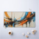 Upgrade your workspace with this visually striking desk mat. The artwork showcases a powerful mid-century abstract composition with sweeping orange and blue curves and sharp industrial lines. It provides a smooth working surface while adding a highly professional, energetic, and creative vibe to your desk environment.