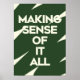 Make a powerful statement with this bold typographic wall art print in deep forest green and warm cream. "Making Sense of It All" — a striking motivational quote rendered in heavy display lettering with dramatic graphic slashes for added energy and edge. Perfect for home offices, creative studios, reading nooks, and gallery walls. Typography art is one of the fastest-growing interior design trends in Australia and the US for 2025, and this piece delivers maximum visual impact with clean, graphic confidence.