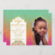 Bollywood ou les nuits arabes thème anniversaire carte photo d'invitation à la fête d'anniversaire en magenta, orange, et aqua ombre avec des accents de feuille d'or.