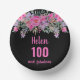 100e anniversaire "100 et fabuleux" rose noir aquarelle plaque de papier floral. Personnalisez avec nom, âge et texte.