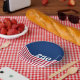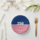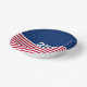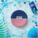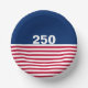 In celebration of America's 250th birthday, this paper bowl has a blue field at the top with 250 in white text. It has red and white stripes at the bottom that is reminiscent of the American flag.