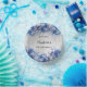 Un arrière - plan à l'aspect faux argenté décoré de faux parties scintillant, de mousseux et de fleurs bleues. Personnalisez et votre nom et la date de la fête.