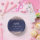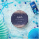 Un arrière - plan bleu marine. Décoré de confettis d'or rose. Personnalisez et ajoutez un nom, un âge et une date. Texte blanc.