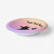 Ce bol en papier a deux heureux ours noirs dansant portant des casquettes rayés rose et violet sur arrière - plan pastel de jaune, rose pêche et violet. Customisez votre texte avec le modèle.