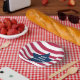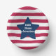 Botte de papier Set imprimé avec le lettrage rouge blanc et bleu de Dieu Bless America et rayures design par TheFabricSeal à Zazzle.com #ZazzleMade TheFabricSeal ©️ Original. Bandes de broches horizontales rouges et blanches avec une grande étoile bleue et la phrase en lettres blanches à l'intérieur. Parfait pour mélanger et faire correspondre Americana U.S.A. patriotique national stars et rayures drapeau, fierté nationale et 4ème. De Juillet célébration de la naissance de notre beau pays avec des conceptions thématiques et des produits ensemble. Idéal pour compléter mode décontractée, décoration intérieure design, célébrations, divertissement, sports, vacances et plus encore. Chaque série de huit plaques papier est imprimée sur un stock papier durable. Ces assiettes sont parfaites pour servir des gâteaux, entrées ou salades. Commandez-les avec nos serviettes et assiettes en papier pour un ensemble complet de vaisselle de fête que vos invités adoreront!