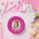 Un arrière - plan rose vif. Personnalisez et ajoutez une photo et un âge. Avec le texte : Joyeux anniversaire. Texte courbe. Texte de couleur blanche.