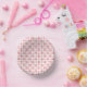 Le design coquette de cerise donne à ce bol de douche nuptiale un look fun et tendance que toute future mariée aimera. Il y a une frontière de motif de cerise coordonnatrice. Les couleurs sont rose et rouge.