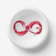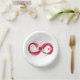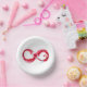 Infinity symbole of continuous stream of red pouring into glass glass glass on white background.