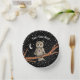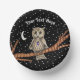 Ce bol en papier a une chouette brune assez claire avec des yeux dorés sur une branche d'arbre portant un collier de cristal violet avec un croissant de lune et des étoiles sur un arrière - plan noir. Customisez votre texte avec le modèle.