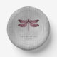 Personnalisez un bol en papier unique pour les invités de réception de mariage avec un ensemble de bol en papier Mariage à libellules bijoux. La conception d'un bol en papier présente une libellule à bijoux vibrante contre un arrière - plan rayé vintage en détresse. Personnalisez avec les noms du marié et de la mariée avec la date du mariage. Papier à lettres mariage supplémentaire disponible avec cette conception aussi.