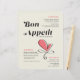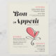 Ces menus de feuilles de papier mariage de style vintage de 8,5 x 11 pouces présentent des lettres noires et saumons avec un titre stylisé, "Bon Appetit", en grandes lettres noires avec un accent de coeur saumon sur un arrière - plan d'albâtre. Le menu propose 2 entrées, 2 entrées et 2 desserts ainsi que les noms des couples mariages.