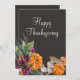 Envoyez un message d'accueil à vos amis et à votre famille près et loin de Thanksgiving, avec cette carte de bon thanksgiving rustique de récolte d'automne avec citrouilles, feuillage et baies sur un arrière - plan gris charbon avec un élégant type de script. Voir la collection complète des produits de ce design et ses variations à l'adresse suivante : https://www.zazzle.com/collections/happy_thanksgiving_watercolor_pumpkins_autumn-119032508465779352