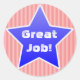 Grande étoile bleu patriotique sur des bandes rouges collants ronds de phoques. "Great Job !" est en texte blanc et élégant. Ou changez facilement le texte pour customiser. Grand autocollant de prix pour les enseignants, ou utiliser pour faire de la publicité pour votre entreprise, ou simplement supprimer le texte et l'abandonner entièrement pour une grande étoile bleue vierge.
