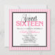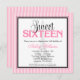 Une invitation orientée rose et noire chic du bonbon 16 de Paris. En comportant une illustration de Tour Eiffel et une rayure modelez l'arrière - plan. Graphiques par des illustrations de JW chez MyGrafico
