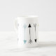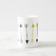 Des flèches tribales recouvrent cette jolie tasse de porcelaine osseuse.