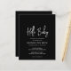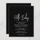Baby shower moderne à budget noir avec un design simple avec "Hello Baby" dans une élégante typographie de script et les détails de votre événement dans une police sans serif minimaliste. Cette invitation chic est neutre du point de vue du sexe, ce qui en fait un lieu idéal pour avoir un bébé ou une petite fille.