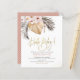 Un baby shower rustique et élégant avec des lettrages en or moderne et un bouquet floral aquarelle. La verdure apparaît dans le coin supérieur gauche et comprend des feuilles de palmier séchées, de l'herbe de pampas, des frondes de palmiers, des orchidées et des fleurs roses. "Hello Baby !" apparaît ci-dessous en calligraphie chic avec les détails de votre événement ci-dessous en typographie simple. Dans le coin inférieur droit, il y a de la parties scintillant en faux or pour équilibrer le design et ajouter un peu de brillant supplémentaire! Les cartes sont retournées à une couleur rose bohème poussiéreuse avec un motif en carreaux blancs. Modifiable en ligne, il suffit de modifier le libellé dans les cases modèles fournies. Créez vos propres invitations imprimées et personnalisées ! Ce thème de verdure désertique est parfait pour les averses de printemps, d'été et d'automne. Dans le cadre de la sélection du budget sur Zazzle, cette feuille n'est pas une taille invitation standard ou une qualité de papier. Si vous voulez ce design sur une carte d'invitation, vous pouvez le trouver dans notre magasin ou utiliser le Zazzle Make Machine pour le transférer sur le produit de votre choix. N'hésitez pas à m'envoyer un message pour les jeux de baby shower, les cartes de recettes, les cartes de remerciements, les panneaux, les inserts ou toute autre idée personnalisée que vous avez - Je serai heureux de vous aider!
