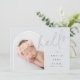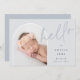 Design élégant de faire-part de naissance photo avec une mise en page unique, cette carte chic dispose d'une photo verticale en forme d'arche sur un arrière - plan gris neutre doux, avec "bonjour" superposé dans la typographie de script lettré à la main. Personnalisez avec le nom, la date de naissance et les statistiques de naissance de votre nouveau bébé, et ajoutez un message personnel au dos, ainsi que trois photos carrés supplémentaires.